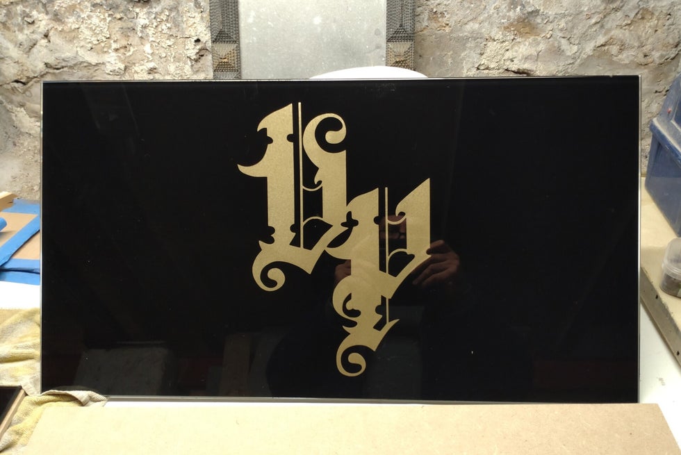 gravure sous verre et dorure pour desserte de tattoo